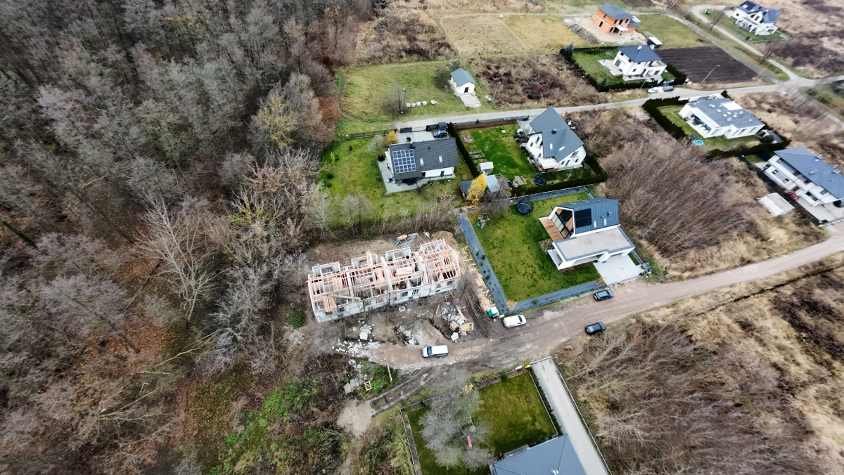 Inwestycja położona jest na końcu spokojnej, zielonej uliczki wśród drzew – idealne miejsce dla rodzin i osób szukających wytchnienia.
