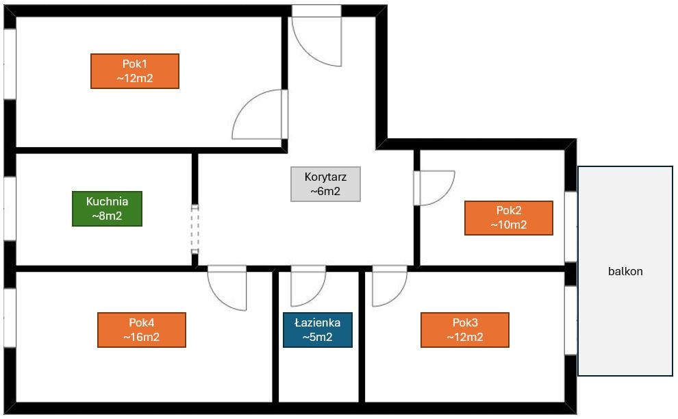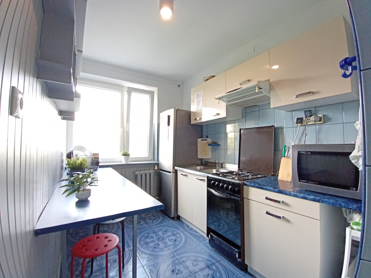 Mieszkanie dwustronne. Balkon i 2 pokoje na stronę zachodnią. Kuchnia i 2 kolejne pokoje na stronę wschodnią.