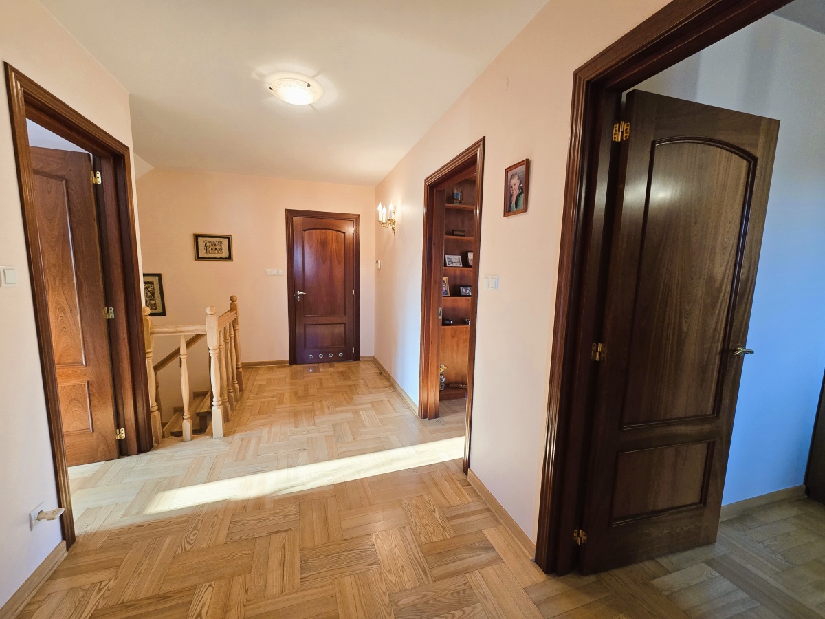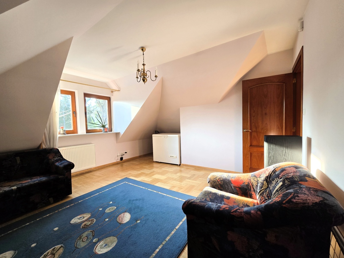 Dom utrzymany jest w świetnej kondycji. Podłogi dębowe zachowane są niemalże w idealnym stanie, kuchnia w drewnianej zabudowie z włoskiej akacji wciąż ma swój urok, drewniane okna działają bez zarzutu. Oferta obejmuje również kompletne umeblowanie i wyposażenie (w tym również dodatkowa duża zamrażalka, kosiarka, wyposażony przydomowy warsztat w garażu, telewizor).