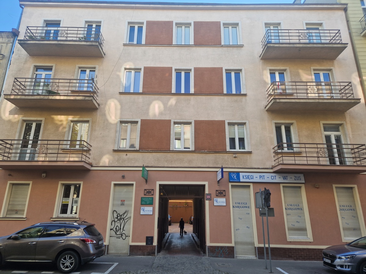 The courtyard is accessible for residents’ cars. Additionally, a guaranteed covered parking space is available just 20 meters from the building for 350 PLN/month.