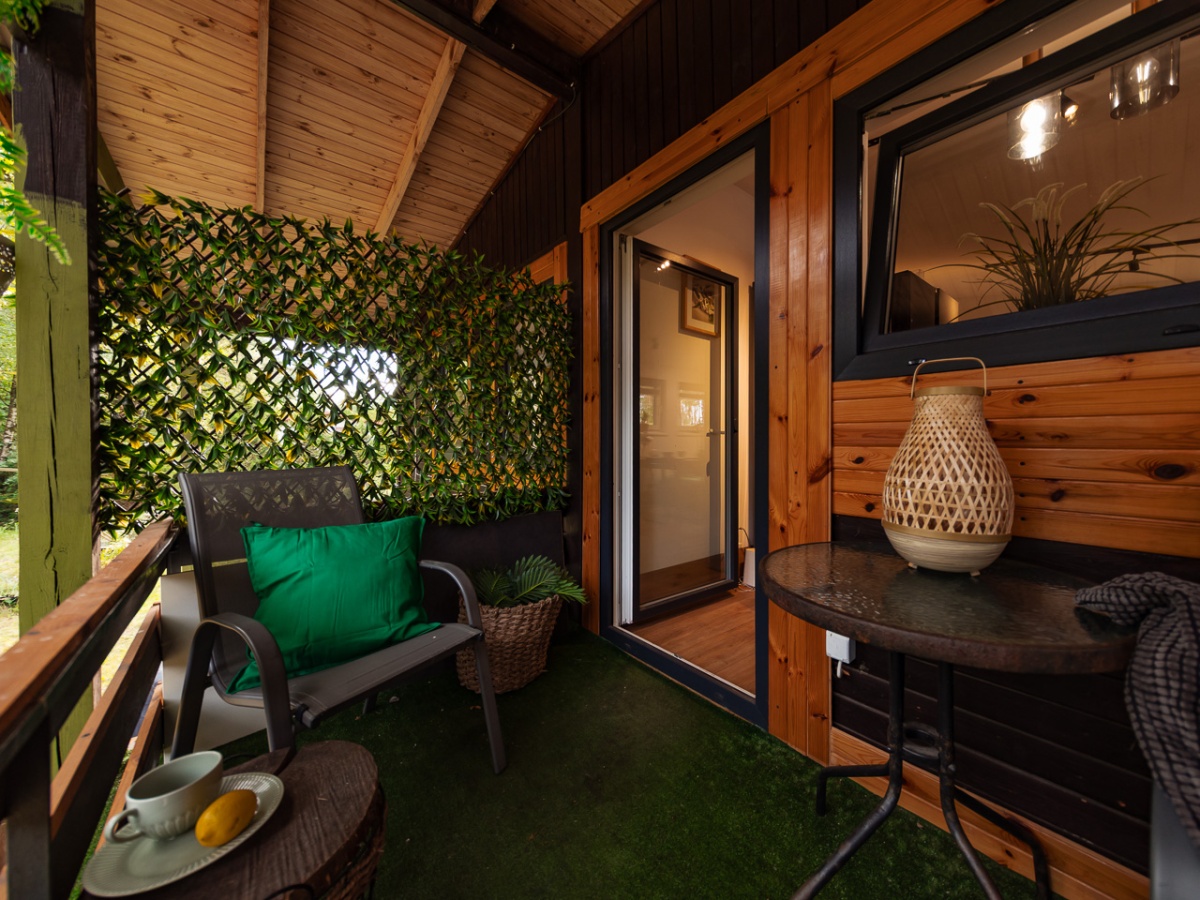 Słońce prześwituje przez igliwie, ptaki śpiewają tuż za oknem, a Ty pijesz kawę na ganku, otulony ciszą, jakiej próżno szukać w mieście.
